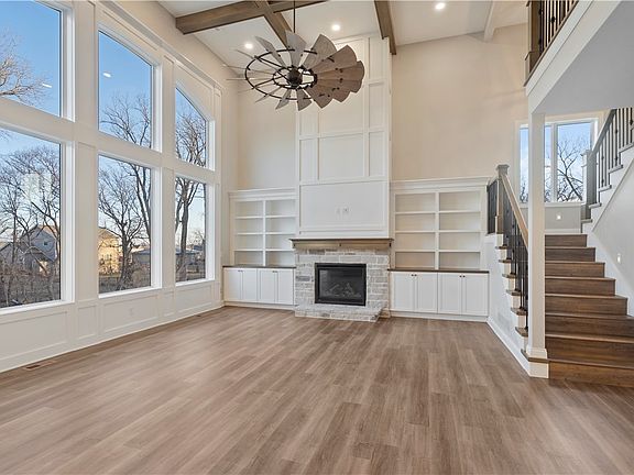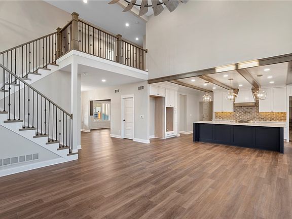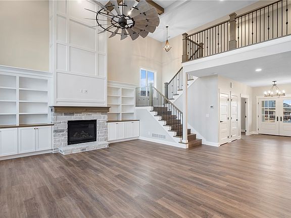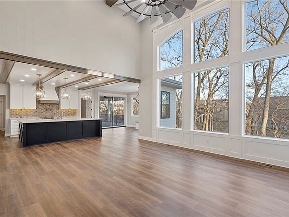 Pure elegance and scale are at the forefront of this beautiful Kimberley property situated on a cul de sac in Urbandale. You are greeted with grand double doors as you enter this 4,800 sq ft [total finish] home. The specs: 1 acre lot, 5 bedrooms, 5 bathrooms, theater room, chef kitchen, huge drop zone, gym, four car garage w epoxy floors and Waukee Schools. The main level boasts a spacious office with built ins, formal dining and a soaring two story living space with expansive Marvin windows from floor to ceiling. The kitchen offers a Jenn-Air appliance package, huge center island, drink buffet, large hidden walk-in pantry and a built-in corner bench dinette. Other kitchen amenities include soft close drawers and quartz countertops. Just off of the kitchen you will enjoy the covered composite deck overlooking your private lot backing to trees. Upstairs you'll find four large bedrooms, three bathrooms, and a balcony overlooking the main living space and stone fireplace. The walkout basement has a living space, full wet bar, theatre, 5th bedroom, 5th bathroom and a gym.