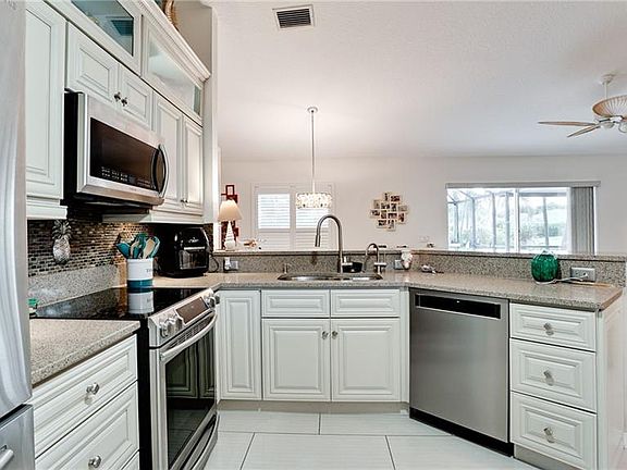 This home has been completely refitted with new floors, new cabinets and back lighting to make it a piece of art. I love it and you will too. As you enter, you feel welcome with great colors and attention to detail everywhere. Your eyes are drawn through the home to the covered pool/Lanai and the view of the community pond to wake you up every morning. This home has an efficient, open kitchen with back lighting and under cabinet lighting, a desk area, and breakfast bar, built in cabinetry in the dining area matching the kitchen. Granite counters and stainless appliances make it a tastefully modern place to gather and enjoy. This home has been professionally tiled, creating beautiful consistency throughout. Baths are remodeled with raised cabinets and newer shower and tub surrounds, fixtures, dual sinks in the Master and so much more. A/C was updated in 2017 (permitted), and the pool equipment includes a heater and a variable speed pump to keep warm and inexpensive to enjoy year-round. This pool home with an oversized 2 car garage is the only active listing in Hammock Place. Make sure to see it soon.