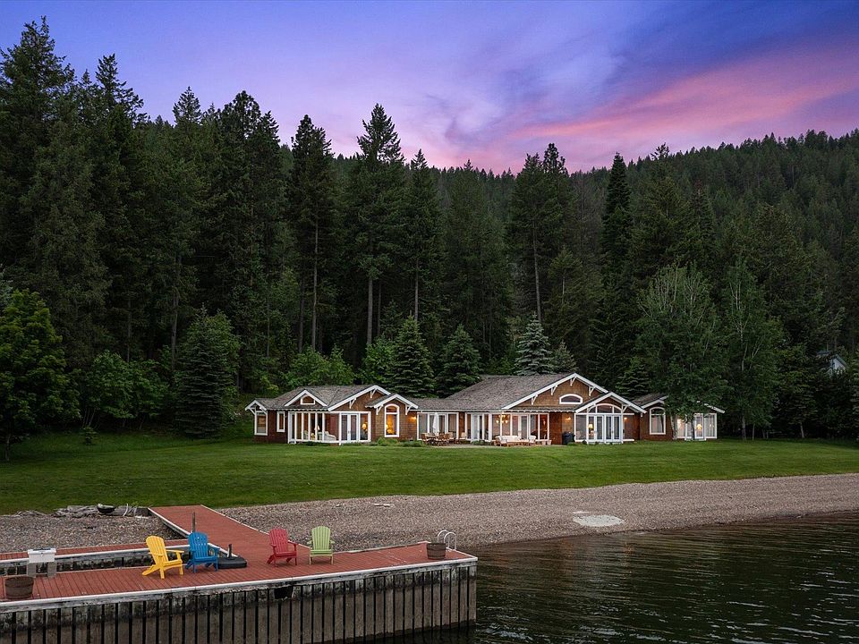 Welcome to Water Landing! Unparalleled 300 feet of flat beach frontage of Lake Pend Oreille. 180 degree lake views that capture Schweitzer, Sandpoint, Kootenai Point, Fisherman Island and all the way down to Hope. A masterpiece created by ski goggle innovator "Bob Smith". His eye for detail transfers to this custom home with specialized corner windows to seize the amazing unobstructed views of beautiful Lake Pend Oreille. The property features 2 homes, a tool shed, and a dock with a boat lift, all situated on a park like 1.51 acres. Main home is 4011 sq.' Guest home (built 1965) is 985 sq. Filled with bunk beds and a king primary suite, sleeps 10. The main house (built 2000) features huge dual primary suites, gourmet kitchen, large open areas and vibrant natural light. Both primary baths are appointed with garden soaker tubs, open tiled showers, huge closets, and dual sinks. Imagine yourself landing at your new house in your float plane. Imagine running to town in the boat. Or just imagine submersing yourself in the beauty that this property has to offer.