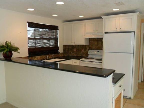 Move right in! Nicely remodeled kitchen with cream color wood cabinets, corian counters and sink. Large raised snack bar and lighted display cabinet. Kitchen lighting on a dimmer to set the mood. Master suite with full bath, tub with shower and separate commode area, walk in closet. Inside laundry room between the bedrooms to make laundry day a snap. Newer carpeting and nice tile floors. Front courtyard with access from the living room and hallway. Large corner fenced lot. Close to shopping.
