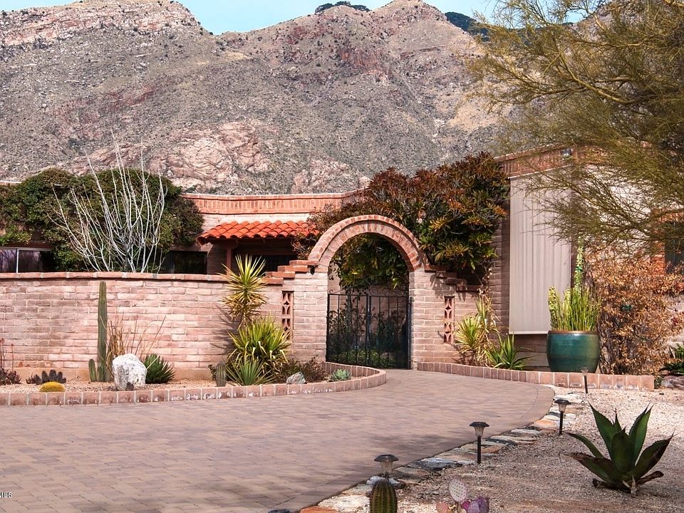 For more information on this property, contact the Listing Agent, Peter DeLuca at (520) 977-4770 or PeterDeLuca@realtytucson.com. The spectacular curb appeal and AMAZING MOUNTAIN VIEWS will draw you in the moment you pull up to this Classic Adobe hacienda nestled in the heart of the foothills. The brick paver driveway and arched gated entry are a wonderful welcome into this immaculate, well cared for 4 bedroom+Den, 2.5 Bath home with picture windows framing the stunning Catalinas. Kitchen has lovely granite countertops, black appliances and more irresistible mountain views. Very versatile floorplan with den & ½ bath on one side of kitchen and dining/living room with fireplace on the other. Gorgeous backyard has large flagstone covered patio, BBQ and basketball court. Wonderful HOA amenities include community pool, tennis and recreation center.