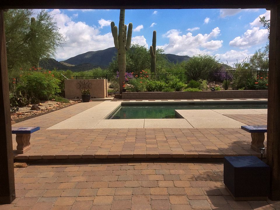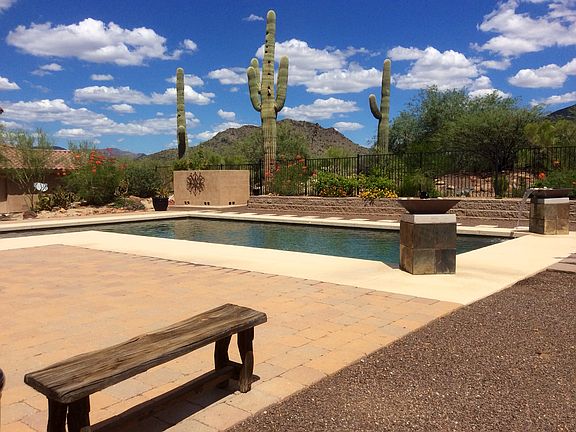 Stunning views from every window and every part of the property. Very private 2.5 acre lot in an exclusive neighborhood. 1.3 acres is flat and undisturbed, no washes. Ideal for horses, RV garage, casita, tennis. Beautiful 35 foot pebbletec pool with seating area. Ramada, huge paver deck, and large back patio with BBQ make it a great home for entertaining. Kitchen has new granite counters, stainless steel appliances and a breakfast bar. Knotty Alder cabinets throughout. Bedroom downstairs next to full bath, great guest suite. New master bathroom shower. Huge fenced yard for children or pets. Access to Cave Creek Recreational trails. Close to schools. Both City water and a shared well.APN 211-47-049-C is included in sale.. Owner Agent