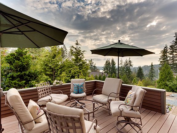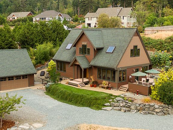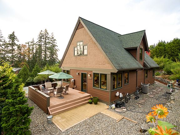 Views of Lake Whatcom! Fenced over half acre lot with 12 blueberry bushes, 3 Asian pear/apple trees, 3 cherry trees, 2 plum and one apple and a large, fenced, (organic only) raised bed garden. Custom home was built in 2006 with Brazilian Cherry hardwood floors, Cherry wood kitchen cabinets and beautiful fir wood framed windows and air conditioning. Full sun all day and very private yard with trees and shrubs. Upstairs has 2 bedrooms, den (could be another bedroom), full bath (tub, sink, toilet), 1/4 bath (sink and shower). Main floor has master, full bath, kitchen and living room, pantry and utility room. Finished heated basement has workshop and separate carpeted rec area with 1/2 bath and fireplace. Located on a non-through road this home is 7-8 blocks from the public beach access on North Shore Drive. $8000 to buyers realtor