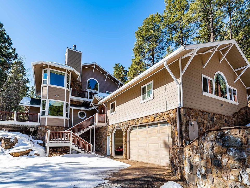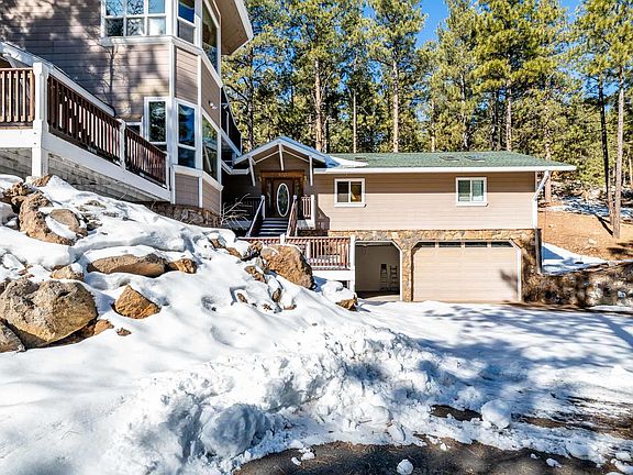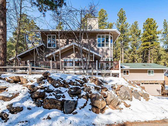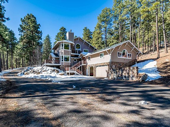 INCREDIBLE PRICE on this custom built home that is located in one of the most desirable areas in Flagstaff! Hidden Hollow is known for its Ponderosa Pines and large, private parcels. This home sits on just over 2 acres & has great views of the San Francisco Peaks. There's plenty of space for all your living, storage, vehicle and toy requirements. With 5 bedrooms and 3 baths, a sauna room off of the spacious deck, three car attached garage and a two car detached with finished upper level space. The kitchen, living room, & dining room have 10 foot ceilings with a moss rock fireplace as the focal point. The massive master suite with wood stove fireplace, large sitting area, office and access to the master