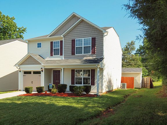 As you approach the end of the cul-de-sac, you find this picture perfect home conveniently located in Winston Salem! The stunning wood flooring on the main level accentuates the neutral decor & stylish fixtures. And the kitchen is HUGE with walk in pantry & tile back splash. The loft is a great 2nd den or office. Access the covered patio & back yard with privacy fencing through the double French doors. The large party/playhouse is perfect for entertaining or storage ... plus separate storage building.