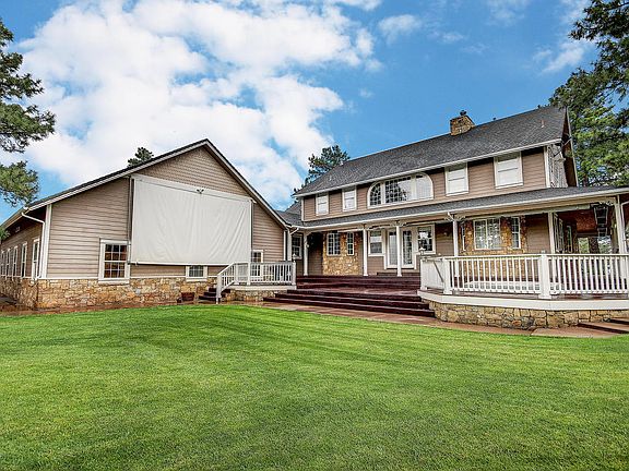 HUGE PRICE REDUCTION! Spectacular Country Estate bordering National Forest on 2.66 acres with Peak Views and plenty of room to entertain! This stunning 7 bedroom, 3.5 bathroom one-of-a-kind property includes a surround sound movie theater, full basement as a game room, extra large bonus room, loft, separate office, A/C, volleyball court, 2 story treehouse w/ chicken coop, outdoor projector/movie screen, telluride stone fireplace, heated deck w/ Trex decking, concrete patio & courtyard, circular driveway w/ stained concrete, 2 outdoor ponds, firepit, fenced garden, Victorian lamp posts & surround sound throughout including garage & deck! The garage is heated w/ A/C and 14 ft RV door. Truly captivating property with excellent craftsmanship and detail!
