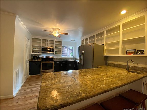 Brick ranch style home with a driveway to privacy. Adjacent lots are empty giving you plenty of space between homes and gravel driveway gives you more then enough space to park multiple cars as needed. House is a 3 bedroom 2.5 bath with office/crafts room that can also work as a 4th bedroom if needed. Granite counter tops and open kitchen with wet bar and walk-in pantry. Walk from your garage directly to your kitchen and laundry room to drop off your groceries and other household items. Fenced in back yard and huge screen-in porch to enjoy the mild Carolina weather. Additional storage under the house and pull-down attic space. A solid home with many amenities for the price! Located in the Mallard Cove POA gives you access to the pool and tennis courts just down the road. Also located close to the recently added electric back gate for easy access in and out of Carolina Trace!