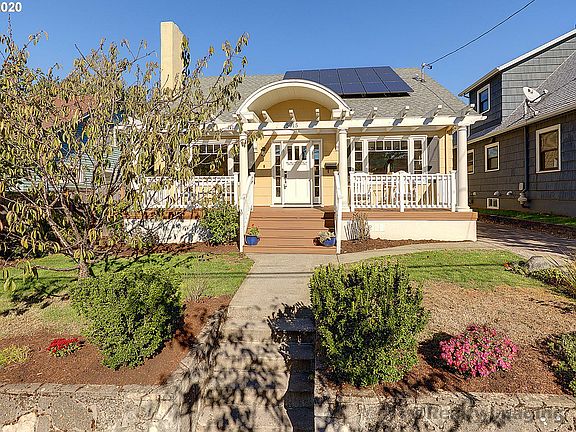 Full width front porch graces this classic Portland bungalow. Fabulous combination of contemporary convenience with old school style and charm. Plenty of space for varying needs and uses. Hardwood floors, gas fireplace and period trim and fixtures. Spacious primary suite upstairs with plenty of storage. Lower level flex space with egress window and full bath. Washer/dryer, fridge and stove stay. Patio, garden beds. Easy proximity to MAX, Hollywood, and parks. Solar panel lease paid in full .
