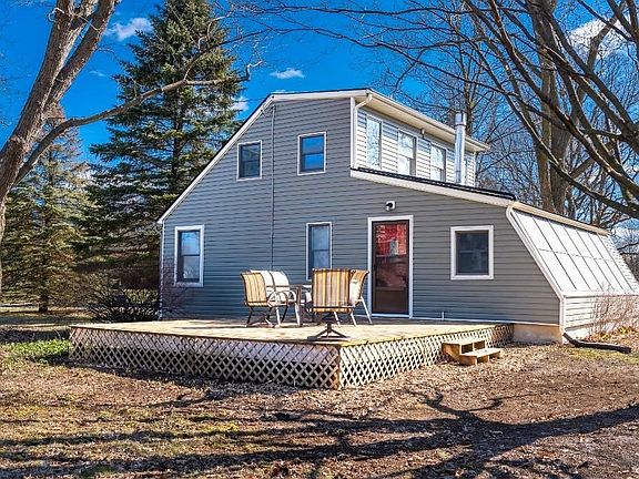 This absolutely charming 2-bedroom home features the best of all worlds--it sits on nearly an acre, surrounded by trees, just 10 minutes from downtown Ann Arbor. When you enter you'll fall in love with the wood beams and wall of south-facing windows. Fully updated kitchen with beautiful cabinets, quartz counters, and newer appliances. The kitchen is open to the large dining/sitting area with brick floor and gas potbelly fireplace--so cozy and great for entertaining! Main level features living room with adjacent study area, bedroom and updated full bathroom. Upstairs you'll find the large master bedroom with generous closet space. And wait until you see the four-car garage, where you can park or store all your vehicles, as well as have a workshop. Above the garage is an unfinished bonus room with exterior entrance. A large deck, circular drive, shed, fire pit and tilled garden area complete this amazing outdoor space. Additional benefits include: full/clean basement, updated plumbing, recently cleaned furnace, and township taxes.