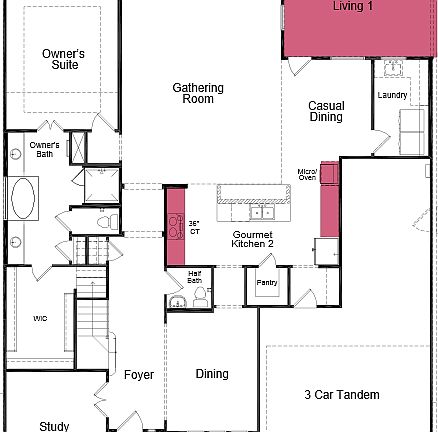 The spacious Sapphire in Round Rock, TX. A sophisticated study features French doors and easily converts into a convenient work from home office. Upstairs, a game room and dedicated media center provide countless hours of family fun and excellent entertaining spaces when hosting get togethers. A covered porch and spacious outdoor living space adjacent to the great room are ideal for enjoying the temperate climate of the Austin Hill Country. Like other plans offered at Vizcaya, Sapphire features an immaculate owner's suite, gourmet kitchen and bright open-concept great room. Unique to this design, all secondary bedrooms include walk-in closets