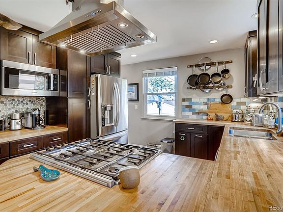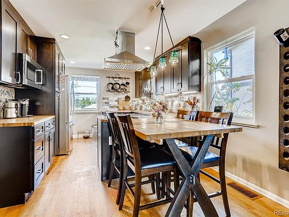 Charming West Highlands 3 bedroom brick house on beautiful, tree-lined 35th Avenue which is also designated as "West 35th Avenue Neighborhood Bikeway". Walk a short distance to grocery shop at Sprouts or stroll to Tennyson Street Shopping and Restaurant District. Venture on to Sloans Lake for a walk or run! Park your car in oversized garage with 9' garage door or park in front and continue to house along paved walkway towards front door. Envision spending mornings on covered front porch while you have coffee and plan your day! Enter front door into cozy living room with east and south windows. Continue through living room to perfectly appointed, remodeled kitchen featuring butcher block counters and high-end stainless steel appliances. Kitchen counter flows into a wood peninsula table that seats up to 8 people. Main level has a remodeled bathroom with heated floor and accent tiles in shower/tub. This home is complete with new windows and copper piping! Continue downstairs to spacious entertainment room with wood-burning fireplace. Step into walk-out lower level bedroom featuring hardwood heated floors, open ceiling, walk-in closet, and French doors with access to hot tub and garden. Gardener's dream home with vegetable garden and grass watering by automatic sprinkler system with WIFI/Smart Controller. Entertain guests on back patio complete with brand-new outdoor kitchen protected from the elements by electric awning and highlighted with a bar! Check into your domicile while you're away with Ring Doorbell and Nest Thermostat. When you need to get out of town, you will appreciate easy access to all major highways!