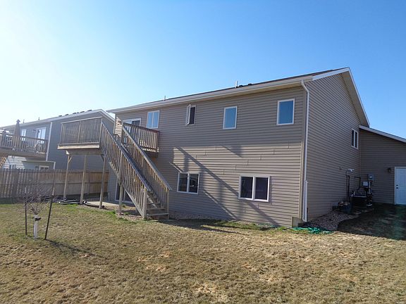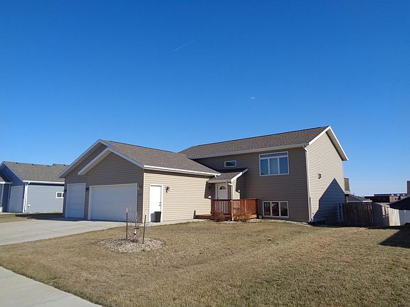 Come see this 2013 open floor plan home with gorgeous 9 ft custom ceilings, spectacular arches, recessed lighting, Anderson windows and Radon mitigation. Living room has a built in entertainment center, gas fireplace and wood laminate flooring. Open kitchen with Alder cabinets, stainless appliances, Duraceramic floors, raised eat at island and walk in corner food pantry. Sliding glass doors to a large deck off the dining room. Master bedroom suite has a walk in closet and its own bath with double sink vanity and shower with glass doors. The main floor has another bedroom, a full bath and a laundry area. Basement is framed out for two bedrooms and a full bath, ready for you to make it your own. Also has a walkout basement to a cement patio. Large triple stall garage with openers, hot and cold water and floor drain. And this property has zero specials!! Call your realtor today before this home is gone!
