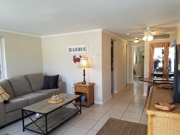 Beautiful corner Villa in a 55+ community, move in ready, single story, 2 bedroom, 1 bath, 1 car oversized garage with remote electric opener, 100 yards from Publix and shopping, restaurants and many other businesses. Just 1 block from US HWY 19 you are close to Tarpon Springs, Palm Harbor, St Pete and Clearwater. This Villa has a community recreation center with a swimming pool, shuffleboard courts and more. This Villa is being offered fully furnished. This home has new tile throughout, updated appliances, large size bedrooms with walk-in closets, a Jacuzzi tub. The attached oversized garage with remote opener has a private entry to the kitchen. 2 TV's, beds, bedding, towels, Silverware, cooking utensils, pots and pans, lighting, many decorative accoutrements and much more comes with this move-in-ready home.Rent includes water, sewer, trash, lawn, exterior maintenance and the roof. This property is eligible for membership to The Gulf Harbors private beach for $156.00 a year.