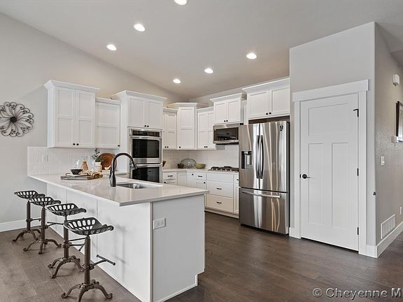 Discover comfort in this 3-bed, 2-bath Cheyenne home. Open living, chef’s kitchen with two pantries, huge island, stainless steel appliances and cozy fireplace for those cold winter nights. Enjoy the primary bedroom with an ensuite bath. Spacious 3-car garage for storage/hobbies. Enjoy Wyoming's beauty in the backyard and all Whitney Ranch has to offer. This is an incredible new neighborhood with walking paths, green space, parks AND a convenient location—near King Soopers, restaurants and shopping! Ask about Homes by Guardian’s special financing, ease of transaction and builder warranty to help you seal the deal for your new home. Welcome home! Currently under construction. Photos are from a previous build.