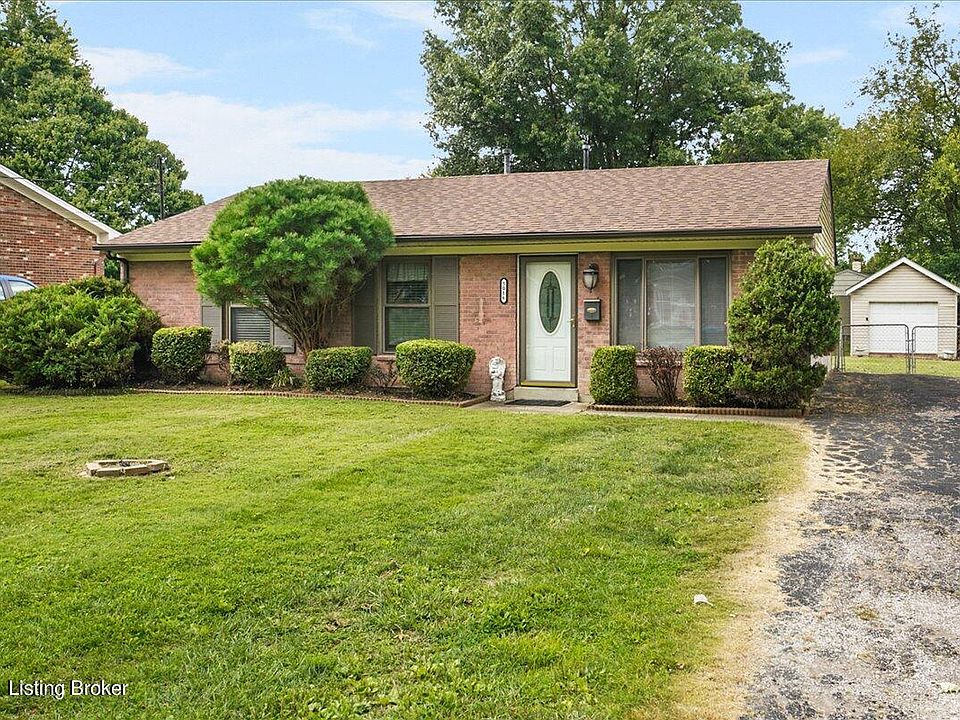 Be sure not to miss this well maintained all brick ranch! It features an extra large primary bedroom and updated hall bathroom. The kitchen connects to the spacious laundry room with extra cabinets. Outside you will find a great fully fenced yard and out building with an automatic garage door for convenient storage. Located close to great amenities: shopping, grocery, restaurants, and more! All appliances will remain with the home.
