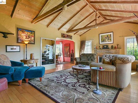 Being outbid on 3/2s? This warm and inviting 1940s traditional has a covered porch entryway and very generous split level floor plan.The large lower level den offers great flexibility. There's a laundry which could possibly be modified to an additional bathroom, plus storage and interior garage access. Dramatic living room with vaulted ceiling and exposed beams. Open plan dining room leads to custom kitchen remodel with high end craftsman style cabinetry, gorgeous counter tops and tile. Easy access for outdoor dining on delightful arbor decked patio or relax in sheltered fenced garden! Enjoy car free option with Woodminster plaza restaurants and grocery store just around the corner. Minimal traffic noise. Park trailhead access for walks and biking, and minutes to Montclair village, schools and easy commute options.