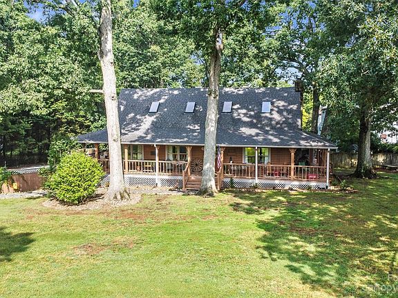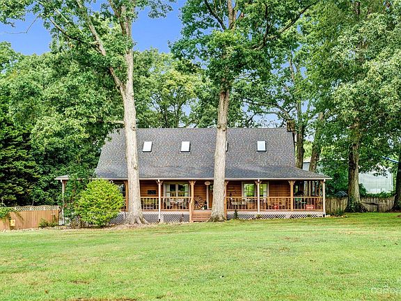 Coming home to this log cabin would make every day feel like a vacation! The mature hardwoods, charming garden areas, and three-sided wrap around porch look like this home is straight out of a magazine! Featuring pine floors, exposed beams, a stone fireplace, skylights, and a cathedral ceiling! Cozy sunroom overlooks fenced backyard and the neighbor's silos for added character! Two bedrooms and full bath on the main level; primary suite tucked away upstairs along with an additional room and full bath, sitting room, and loft area open to living room below. Expanded parking area, fenced backyard, and cute outbuilding! An established vegetable garden area, blueberry and blackberry bushes, a fig and an apple tree, and a muscadine grape vine! Conveniently located to Monroe, Lancaster, and Waxhaw!