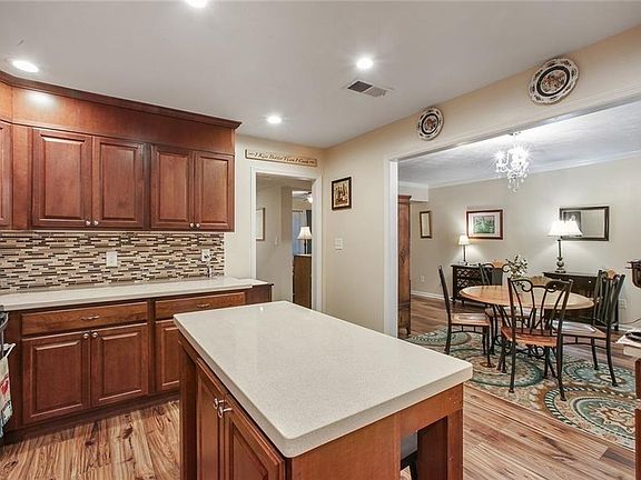 - Kitchen Features: Breakfast Bar, Cabinets Stain, Pantry, View to Family Room, Stone Counters, Kitchen Island, Breakfast Room