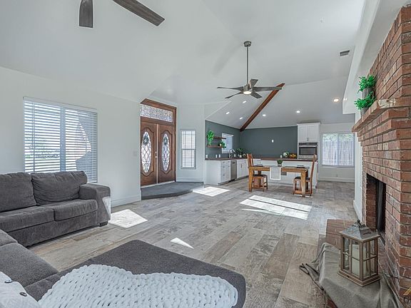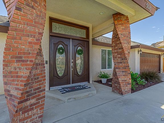 This gorgeous custom 4-bedroom, 2-bathroom home sits in one of N Bakersfield's most desired neighborhoods. You'll be pleasantly surprised as you drive up to a fully landscaped front yard with unique architectural accents, beautiful brick work and a welcome entry way. Featuring a great room with a centralized wood-burning fireplace, a dining area, a stunning kitchen with butcher block countertops, custom cabinetry, a large island and upgraded appliances, a unique courtyard with low maintenance ground cover, perfect for extending your living area, dining area, or entertaining space. Each bedroom is spacious with the 4th bedroom/office boasting built in cabinetry. The guest bathroom has recently been renovated with dual sinks and a tile surround shower and bathtub combination. The master bedroom and ensuite provides for an exceptional space to unwind and relax with its own private fireplace. The exterior offers RV parking, extensive concrete work and an attached 2 car garage.