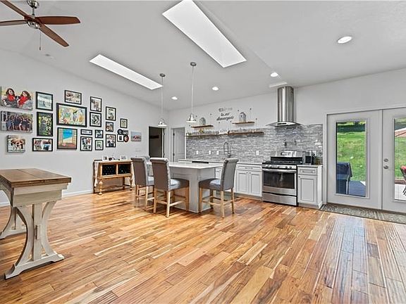 You have never seen an open floor plan like this! You will absolutely LOVE to welcome your friends & family into your new home. Completely remodeled in 2018. Beautiful natural light and high ceilings in a very large combination living room (w/ beautiful stone gas fireplace), dining & kitchen. Beautiful hand-scraped hardwood floors. Kitchen has a gorgeous quartz counter, beautiful glass backsplash, high-end cabinetry, stainless steel appliances, pot-filler faucet over the stove, and a large pantry with unique sliding doors offering large amounts of customized storage. Imagine yourself cooking, spending time with family & friends around the center island of this gourmet kitchen. Large master suite with large walk-in shower, heated bathroom floor & large customized walk-in closet. Large concrete patio with natural gas lines for the grill and firepit is great for meals & entertaining. Big garage with high ceiling. Metal roof. Beautiful front porch with Trex, perfect for relaxing.
