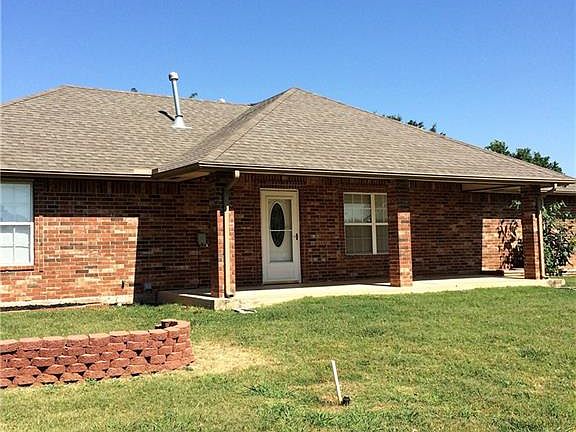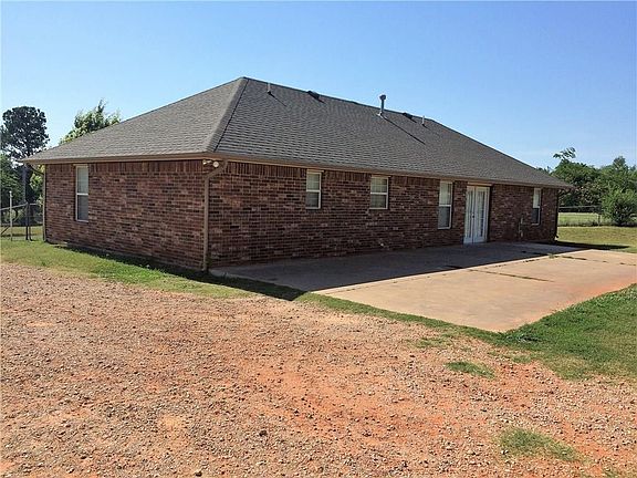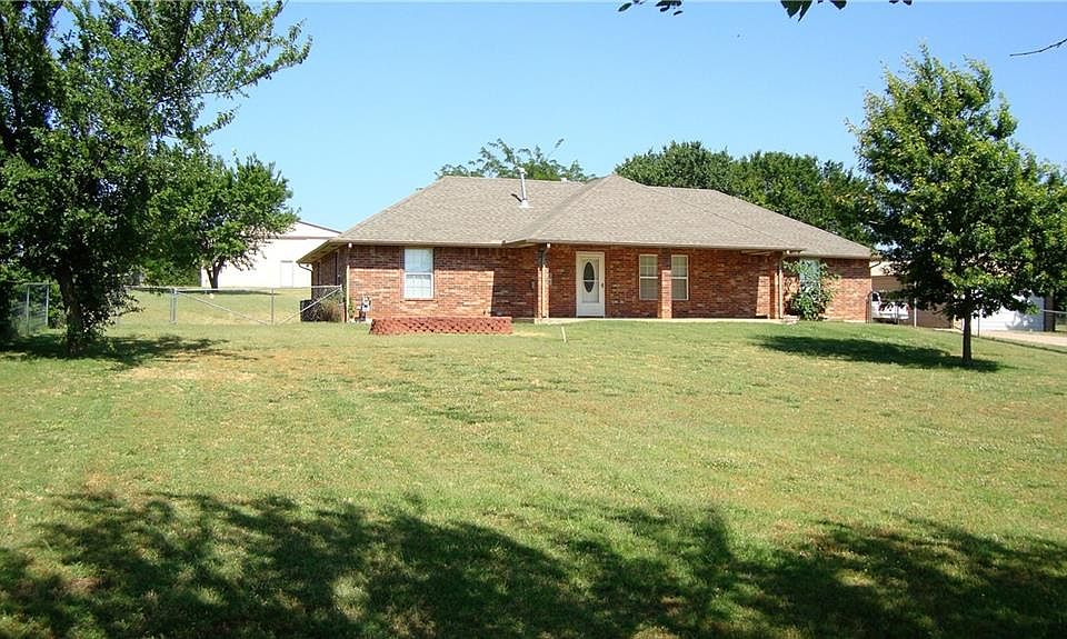 Buyer's military orders got cancelled so it's back on the market! Looking for acreage and a large shop close to town? This is it! Well maintained home on 2.5 acres with an enormous 40x60 shop. Shop has extra tall sliding doors for RV entry and 220 V electric for any shop tools. Entire 2.5 acres is fenced with electric gate access. Storm shelter includes power outlet and cable to keep phones charged during emergencies. Extra large laundry room with connections for gas or electric dryer. All interior doors are a full 36 inches making furniture moving easy. Electric panel in place for a hot tub on the back patio. Covered front porch faces West to sit and watch the beautiful Oklahoma sunsets. Also, fridge is included.