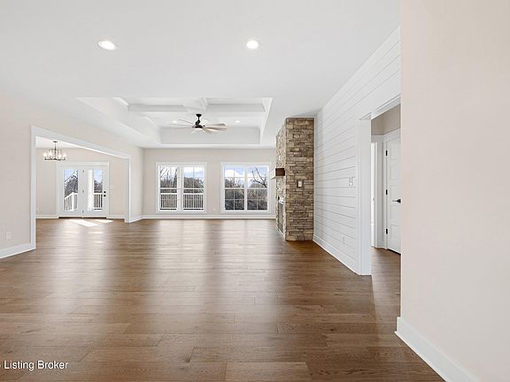 Incredible walk out ranch new construction on 5 acres in an absolutely beautiful setting! You will appreciate the open layout as you enter the front door of the home. The home offers engineered wood floors, a beautiful fireplace in the family room and loads of natural light! The kitchen has beautiful cabinetry with quartz counters and stainless appliances, including a gas range. The split plan offers two guest suites on one end of the home and a the primary suite on the other. The rear covered porch takes in the beautiful views of the backyard. The walkout basement is finished with a full bath, family room, exercise room, and a bedroom. The home has been insulated with foam insulation. The property is positioned perfectly for a buyer to add a pool or pole barn. This property has it all!