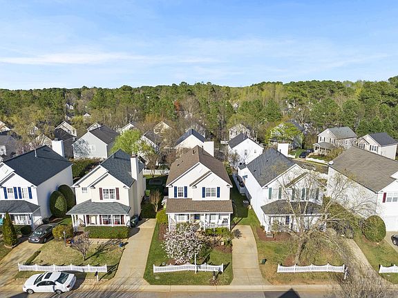 Showings 3/10. Rare opportunity to own an updated home in the desirable Villages @ Harrington Grove! This fabulous model boasts wood floors, a first floor owner's suite & remodeled primary bath with walk-in shower (2022) & walk-in closet, whole house fresh paint, shutters & door, new roof (2022) & new dishwasher (2022). Enjoy coffee on the front porch overlooking the garden or the backyard patio oasis featuring a new gazebo (2023), Coleman 6-person Salu Spa (2022), privacy landscaping including rose bushes, hydrangeas, camelias, magnolia, monrovia & herbs. Easy entertaining in the formal dining room, eat-in kitchen with bay window & powder room leading to the two-story family room with great windows & a stunning gas fireplace. Upstairs you will find two large bedrooms, a shared full bath, two linen closets & a huge bonus loft, perfect as a second living room, convertible fourth bedroom, office or gym. This incredibly versatile floor plan exudes charm & is move-in ready for you! Easy access to shopping, 540, RDU Airport, Brier Creek, RTP & local universities.