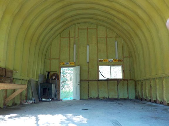 Cabin + shop 2 acres in Kasilof; rough cut log construction on a concrete foundation with power, water and sewer. Private driveway and room to expand. Metal roofs; Shop is 640 ft quonset hut with concrete foundation. Urethane insulation in both bldgs. Owner financing considered with large down. Selling ''AS-Is'' no testing or repairs to be made by seller;