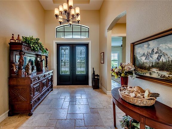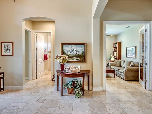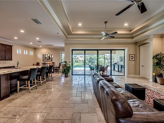CUSTOM DESIGN HOME !!LOCATION LOCATION! Direct Gulf access waterfront pool home! As you enter this all travertine floor home it is expansive with high ceilings and a wide entry. You can see all the way through the home from the entry into the back lanai. There are 3 large bedrooms + Den 3 full bathrooms and a pool bath. One of the bedrooms is a private en suite with its own full bathroom and walk in closet. The house was designed to include all kinds of storage. The master bedroom is huge as is the master bathroom with a separate commode room, a large shower, and a soaking tub. The master bedroom has two extra large his and her walk in closets. The kitchen island is 11 feet with cabinets on all sides, You will enjoy the induction stovetop with a Zephyr exhaust fan system, Dine out on the lanai or inside at the dining table with full right angle glass to enjoy your view of the lanai and the canal. Enter your lanai through sliders that open a full 16 feet. The lanai is 80 ft long, completely paved in travertine. This home has it all!! Dock and lift for your boat, Three houses to the right and your boat is into the river. Walk to restaurants, shopping, and entertainment !!!