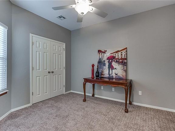 What a great opportunity to own this move in ready gem! It was just professionally painted inside and out, has brand new carpet and a new roof and gutters! The designer colors in this 3 bedroom home work well with your brown or grey tones. You will find a large office, or optional 4th bedroom as you enter the home, and then move into the open kitchen, dining and living. Master suite is on the opposite side from the other two generously sized bedrooms. Both bathrooms have dual sinks and master features a whirlpool tub for relaxing. Washer, dryer and refrigerator are staying, making moving even easier! Excellent highway access, very close to Tinker AFB and shopping.