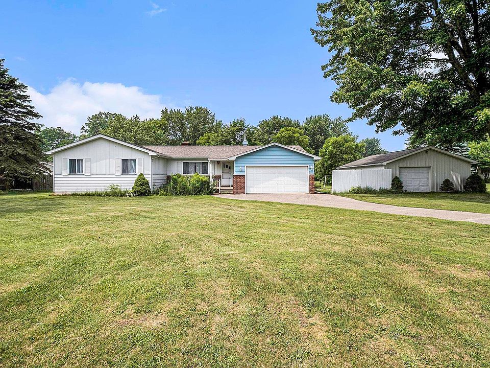 Almost 5 ACRES with a 24 x 28 Pole Barn! Welcome to this ranch-style home nestled on 4.65 acres of picturesque land. This charming property offers a spacious layout with three bedrooms, one full bath, and two half baths, ensuring ample room for comfortable living. As you enter the home, you'll be greeted by a warm and inviting ambiance, enhanced by the crackling fireplace located in the heart of the living room. The kitchen has ample cabinetry, and a convenient layout that makes meal preparation a breeze. Your great room has a splendid view of nature as it overlooks the phenomenal land. The three bedrooms offer comfortable retreats, each with its own unique character. They are well-appointed, offering abundant natural light and generous closet space. Outside, the expansive 4.65-acre property offers endless possibilities. Whether you're looking to create a serene garden oasis, establish a hobby farm, or simply embrace the beauty of nature, this remarkable land provides the canvas for your vision. The Pole Barn will store all your outdoor equipment, extra car or be a fantastic workshop! In addition to its appealing features, this ranch-style home benefits from its convenient location, providing easy access to nearby amenities such as shopping centers, schools, and recreational facilities. With its combination of functional living spaces, a cozy fireplace, and abundant land, this property presents a rare opportunity to embrace a peaceful lifestyle. Don't miss your chance to make this ranch-style home on 4.65 acres your very own. Schedule a showing today and discover the endless possibilities that await you in this captivating property.