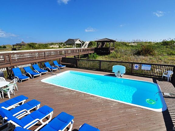 Perfect oceanfront location in the Village of Nags Head. Far enough away from any beach access this lot enjoys beach privacy while being close to shopping and restaurants.The top floor opens to several sitting areas and an updated kitchen. Included on this level is a beautiful formal dining room, sun room, powder room and large master ensuite with sitting room. There are 5 bedrooms with private baths and a central sitting area on the mid floor along with a fireplace and wet bar. The ground floor has two bedrooms, two baths, theater room, game room, sauna and wet bar with mini fridge.