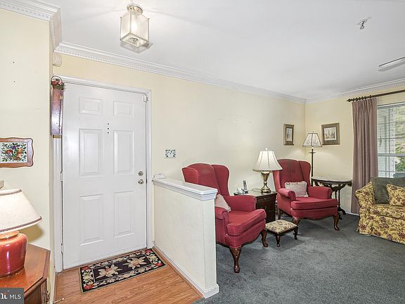 Enjoy the convenience this ground-level two bedroom condo has to offer, tucked away in the popular Silverbrook Wood community, close to everything you need! Graced with accent dentil crown molding that adds a touch of elegance throughout. Sun-filled windows create a bright and inviting atmosphere, and the open-concept living area provides a spacious feel. The dining room seamlessly flows into the kitchen, making it easy to entertain guests. The kitchen is equipped with Corian countertops, a backsplash, a pantry for storage convenience, gas cooking for efficient meal preparation, and pull-out drawers with a pantry for added organization. The primary bedroom suite boasts a walk-in closet, providing ample space for your belongings, and it also has direct access to the bathroom. The second bedroom offers versatility, with doors that open into the living room, allowing you to use the space according to your needs, whether as a bedroom, office, or an additional living area. For relaxation and outdoor enjoyment, you can kick back and unwind on the private covered patio, which provides a cozy outdoor space for leisurely moments. The wonderful community amenities include a BBQ area with picnic tables, dog run, car wash, community center, pool, playground, and a fantastic location close to a variety of shopping, dining and entertainment options.