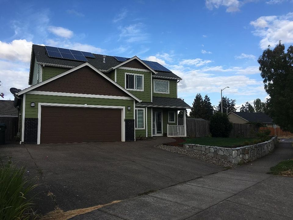 Beautiful 4 bedroom, 2.5 bath home on corner lot with large yard! Granite countertops throughout, walk-in pantry, stainless steel appliances, beautiful newer flooring downstairs, solar panels, huge primary suite with jetted tub and double vanity. Den, covered patio, underground sprinklers and 2 sheds.