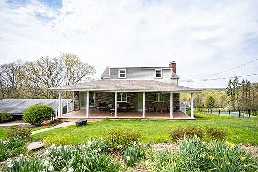 This stunningly, fully updated 3 BR home is situated on a double lot with 2.88 acres of sprawling green space, a 2 car detached garage, an inground pool, pound & large barn. Approaching the home, you are greeted by the large covered porch, accented by the stone exterior of the home, a lovely place to relax & enjoy the outdoors. Inside, you'll find an open concept living room/den with a cozy wood burning fireplace. The kitchen features a large center island, stainless steel appliances, & work area, and flow right into a large and open eating area with ceramic tile floor, vaulted ceiling with wooden accent beams, and tons of natural light pouring in from the many windows & 2 skylights. The formal dining room satisfies all of your storage needs with a full wall of cabinetry. Upstairs a mater suite, with a sitting area & tastefully updated bathroom, and 2 additional nicely sized bedrooms. Partially finished lower level gives additional living space. Welcome Home!