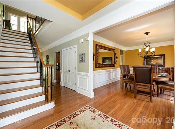 Gorgeous stone and hardcoat stucco home in private setting on cul-de-sac street. Great flow with Eat/in kitchen open to grand 2 story Great Room. Private Guest Suite on Main Level + Full Bath. Hardwoods throughout most of downstairs , Wrought iron staircase and extensive moldings . Built in Speakers in Great Room, LR, Kitchen & Patio. Master Bedroom up w 2 walk -in closets , Huge master bath & private Sitting Room. Bonus Room ( could be 5thBedroom) & Loft/Office overlooking the Great Room. Tremendous expansion potential w/over 2000 sq. ft. of Unfinished Basement Space ( plumbing & electrical in place). Outstanding Outdoor Living Space including Deck overlooking fenced , wooded Back Yard. Outdoor Kitchen w/ fireplace, built in grill & seating area. Lot backs to common area for ultimate privacy! Side load 3 car garage. Ideal location, just over Union County line - easy access to Hwy 16 & I -485.