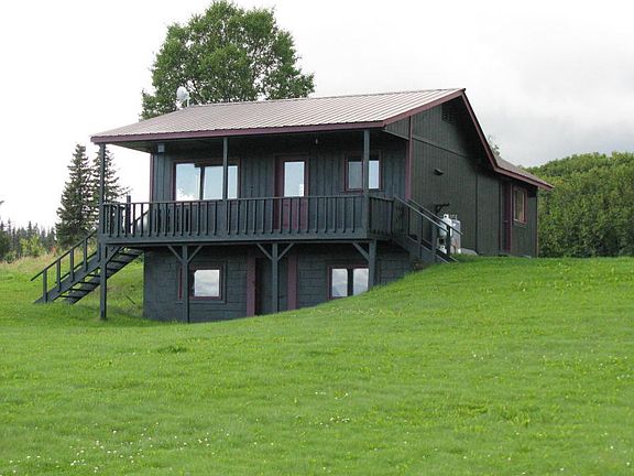 This 1 bedroom, 1 1/2 bath home sits on 6.34 acres of beautiful, gently rolling property. Featuring clover fields, lush lawn, pine trees, new septic system, plus excellent covenants to protect your investment. Fully finished basement can be converted to additional bedrooms. Enjoy the unobstructed, amazing view of Kachemak Bay, the glaciers, and mountains.