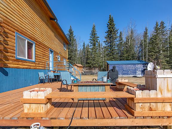 Beautiful log home sitting on five acres. You will LOVE the amazing 24x17 master suite with 12 foot vaulted ceilings, pedestal soaking tub, large walk in closet and private bath. This home has two living areas, an office and large bedrooms. Outside you will enjoy the privacy of the acreage, a brand new deck and the beauty of Alaska.