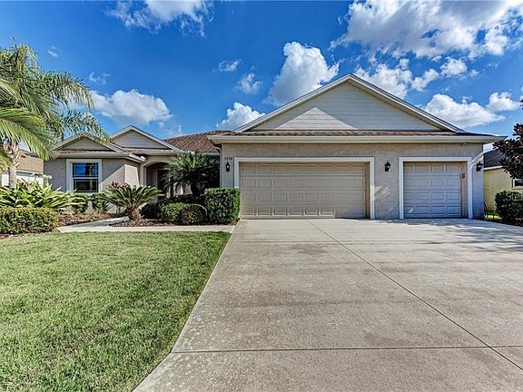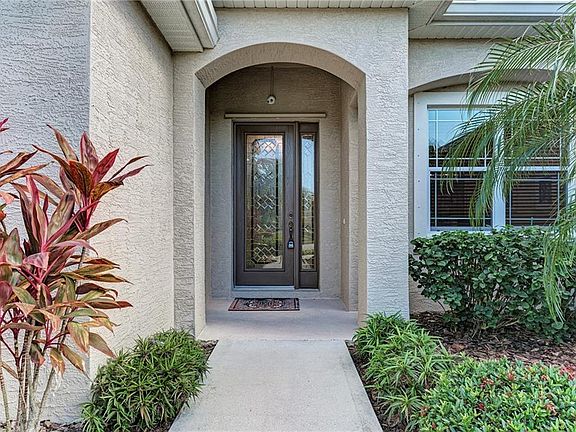 Welcome home to this lovely 3 bedroom plus a home office Pool home in Gamble Creek Estates! This immaculate home has everything you could want in a home. You'll enjoy large living spaces, a formal dining room, a large breakfast area, a three car garage and more. The kitchen is beautiful with its rich hard wood cabinets, brand new quartzite tops and stainless steel appliances that tie it all together. The owner has put new quartzite counter tops in the kitchen and baths to give the home that elegant look you want. The spacious living room opens up to a caged in heated pool and spa that has gorgeous views over the pond. Sit back and relax and enjoy the beautiful sunrises on this scenic lot. Gamble Creek is a highly sought after community located close to shopping, major roadways for easy commute, multiple golf courses, parks and schools. Gamble Creek has a low HOA and NO CDD FEE!! Hurry this home is perfect!