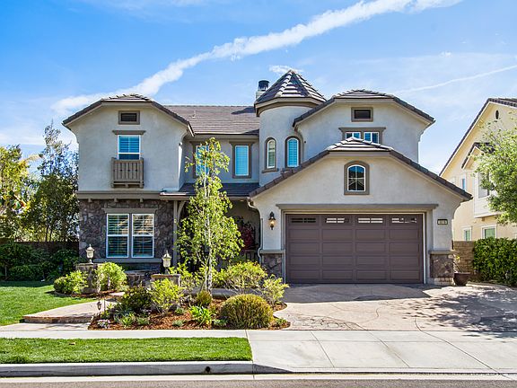 Incredible home in Wild Horse Canyon with spectacular golf course, valley, & mountain views* Located just minutes north of the Yosemite/118 off ramp, but a world apart is whisper quiet setting above Simi Hills Golf Course* Quixotic curb appeal on cul-de-sac features stamped concrete & stone driveway and hardscape, lush landscape and beautiful glass front door entry* Walk inside to rich hardwood floors and 18 foot ceiling* Large formal living room and formal dine* Chef's kitchen opens to massive great room along south (view) side of home* Kitchen features wood cabinets, updated stainless steel appliances, slab granite counters, designer backsplash, hanging lights* Downstairs Bedroom/den/office* 4 big bedrooms & 3 full bathrooms upstairs including master* Master suite has dual sided walk-in closet, private bath with Jacuzzi tub, fireplace, & breath taking balcony with spiral staircase to the yard* Your blood pressure will drop 20 points in this bucolic backyard over-looking the 13th green, BBQ center with fridge, grass, firepit & rock-trimmed, pebble-tec pool & spa with rock grotto & waterfall* Even the garage is sumptuous with epoxy floor & custom cabinetry* Show cold! ***