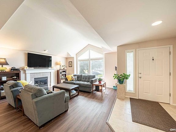 Accepted Offer with Contingencies. Great single level on corner lot in South Salem at an AMAZING PRICE! Tile front entry, w/vinyl plank flooring throughout LR, FDR, kit, DR, FR, & hall. LR w/lrg windows, cathedral ceilings, & gas fireplace. Great kit w/lots of counter space, breakfast bar, & pantry. Great room atmosphere w/kit, DR, & FR. Master suite w/double doors & lrg walk in closet. Beautifully landscaped yard w/lrg patio and awnings.