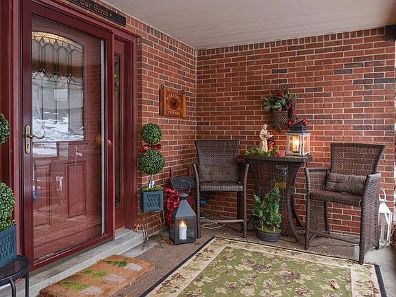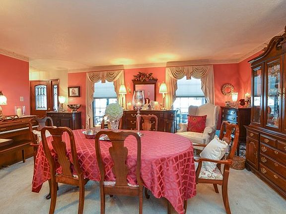 Spacious and lovely 4-bedroom, 3.5-bath Colonial, built by the current owner, offering an attached 2-car garage and level driveway. Convenient to the neighborhood school. A second story addition to the garage is facilitated by plumbing already in place in the ceiling! The covered front porch bids visitors welcome. An elegant leaded glass door and sidelights allow natural light to fill the front entry. The home has formal living and dining rooms. The large eat-in kitchen has been updated with stainless steel appliances that remain with the sale: a double oven, microwave, dishwasher, and refrigerator. It also has a double pantry. The cozy family room offers a beamed ceiling with fan, gas fireplace, and sliding door access to the deck. A guest powder room is accessed from the hallway off the front entry. The en-suite master bedroom is fully carpeted, has a walk-in closet and offers views of the front of the house. The master bath has a step-in shower. Bedroom two offers views of the rear yard and is outfitted with a spacious double closet, ceiling fan, and neutrally toned wall-to-wall carpeting. The main bath has been updated with a jet tub, shower, and tile surround. Bedroom three is also on the back of the house. It too is carpeted, offers a ceiling fan, and has a walk-in closet. Bedroom four has a double closet and window overlooking the front of the house. The bright, lower level game room offers a built-in bar, as well as access to the rear yard. A full bath with shower, storage closet, an unfinished storage room, laundry, and garage access are found on the lower level as well. An above ground pool remains with the sale. Tall pines provide a green border at the rear of the yard. A home warranty is also offered.