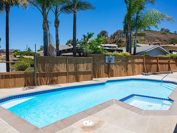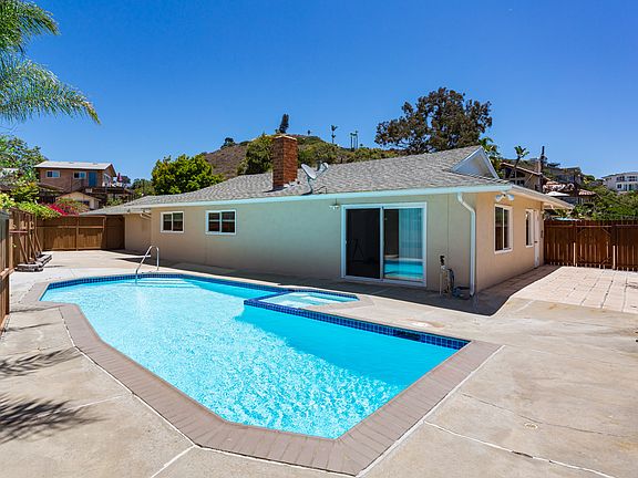 Private location in Bay Park with a view to Mission Bay, Sea World and USD. This home is situated above the street and has a beautiful pool and jacuzzi surrounded by several patios. The inside has a large living room with a brick fireplace and a sliding door to the pool. All new vinyl wood floors, new stacked laundry in a closet off the kitchen, and newer refrigerator. There is a two and one half car garage as well as parking for 2 cars. The driveway is shared with one other home. Pool Service and landscape maintenance paid by landlord. Do not disturb tenants. Tenant pays water, gas and electric, telephone, cable, wifi, trash if charged by city No smoking One year lease