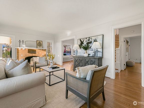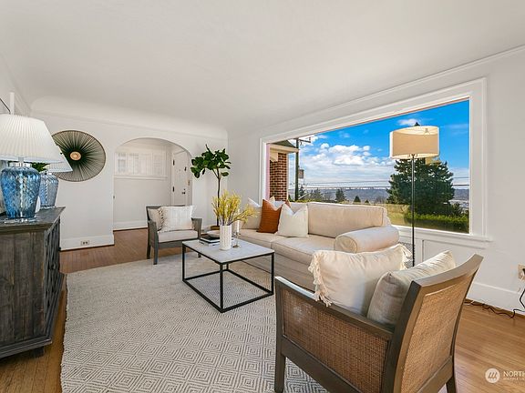 Discover a 1926 Craftsman gem on Phinney Ridge w/ impeccable craftsmanship, coved ceilings, expansive windows, orig. hdwds, protected views of Olympic mountains, & Puget Sound on both levels.The chef's kitchen boasts a Viking Stove, Sub-Zero Fridge, Bosch DW. The primary bdrm is a tranquil retreat w/ 2 w-in closets, stunning views, remodeled 5-piece bath w/ skylight. Unfinished bsmt for customization, terraced deck with a hot tub for relaxation. Attached 2-car garage adds convenience. Positioned on corner lot, just 1 block from the zoo, this residence offers easy access to Phinney's attractions. Meticulously maintained, this Craftsman home invites you to embrace a new chapter of Seattle living, blending timeless charm w/ modern comforts.