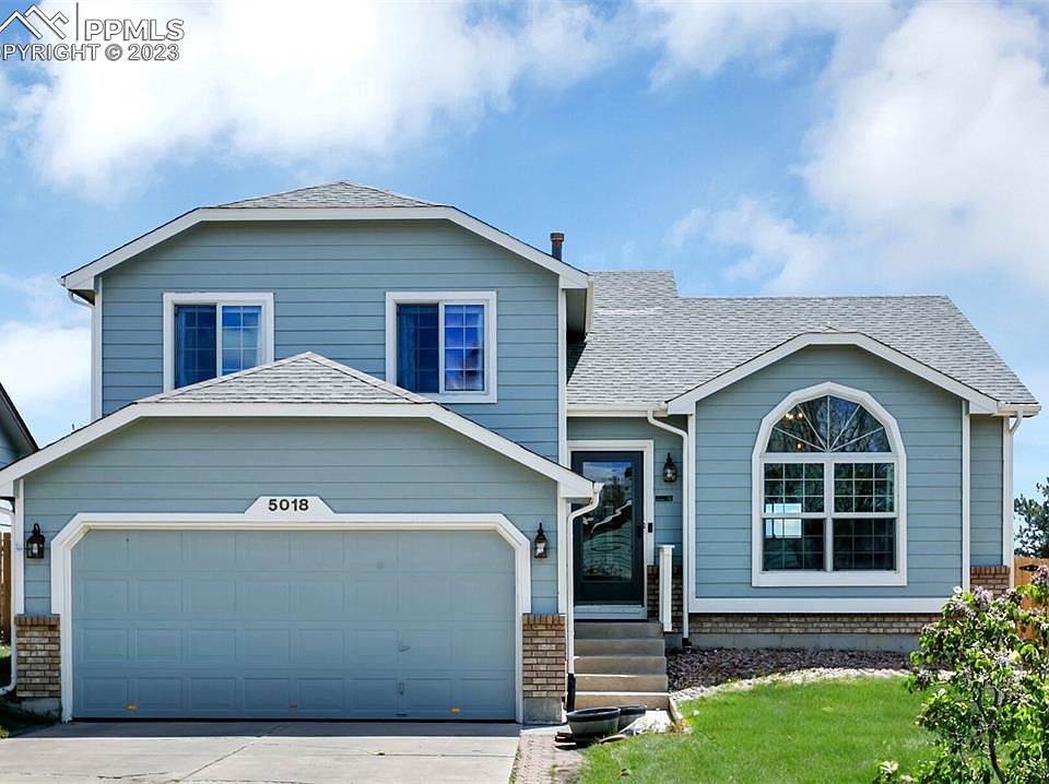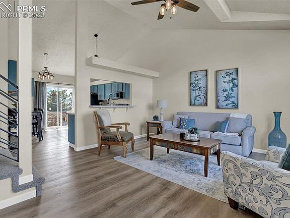 Welcome to this delightful home with modern updates and spacious living areas for your growing family. As you enter, you'll be greeted by an inviting foyer that leads into a bright and open Living Room, complete with large windows that let in abundant natural light. The Living Room flows into the Kitchen, which is both stylish and functional. The Kitchen boasts white quartz countertops that provide both durability and elegance. The undermount sink is a perfect complement and offers a sleek and modern look. The black appliances bring sophistication to a stylish kitchen that you'll be proud to cook and entertain in. From the Kitchen step down into the heart of the home where you will find a Family Room big enough to accommodate a variety of activities and the perfect setting for creating unforgettable family memories. The luxury vinyl floors on the main level add to the modern aesthetic and are complemented by new carpet in the Family Room for added comfort. The Primary Bedroom has an Ensuite, tastefully updated. The second Bathroom is also newly renovated. The Basement boasts additional highly valued space to create a convenient workout room or flex room for future expansion. Newer Windows, New Furnace, New AC and New Water Heater help ensure your comfort year-round. When you step out into your backyard, you're immediately struck by the stunning sight of majestic mountains. New Fence surrounds the yard, providing added privacy and security. No HOA and a gate out the back for storage of a boat or RV. A Shed is also conveniently located to store all your camping and lawn essentials. The location is unbeatable! It's within walking distance to award-winning Academy District 20 schools, parks, and walking trails, making it perfect for families or anyone who loves to be active. With its modern upgrades, stylish finishes, and attention to detail, this house is move-in ready. Schedule a showing today and experience one of the most popular communities in Colorado Springs.