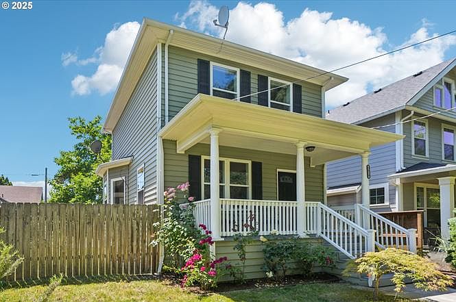 Welcome to this charming and thoughtfully updated 2-bedroom, 2-bath home featuring an inviting covered front porch and a light-filled, open-concept floor plan. The formal dining room with a bay window offers the perfect space for entertaining or everyday gatherings. The kitchen features gas cooking appliances and abundant natural light. Step outside to a spacious back patio and fully fenced backyard with alley access and mature landscaping ideal for relaxing or entertaining. A recently installed sump pump gives peace of mind. Great location with easy access to I-5 for commuting and just minutes from the University of Portland, New Seasons Market, and Columbia Park featuring a playground, splash pad, pickleball courts, sports fields, and beautiful wooded trails. Within 1 block from the home are the Chill N Fill food truck pavilion and numerous restaurants including Lombardo's Pizzeria, The Twilight Room Bar and Grill, and The Fishwife. A move-in-ready home in a vibrant, sought-after neighborhood!