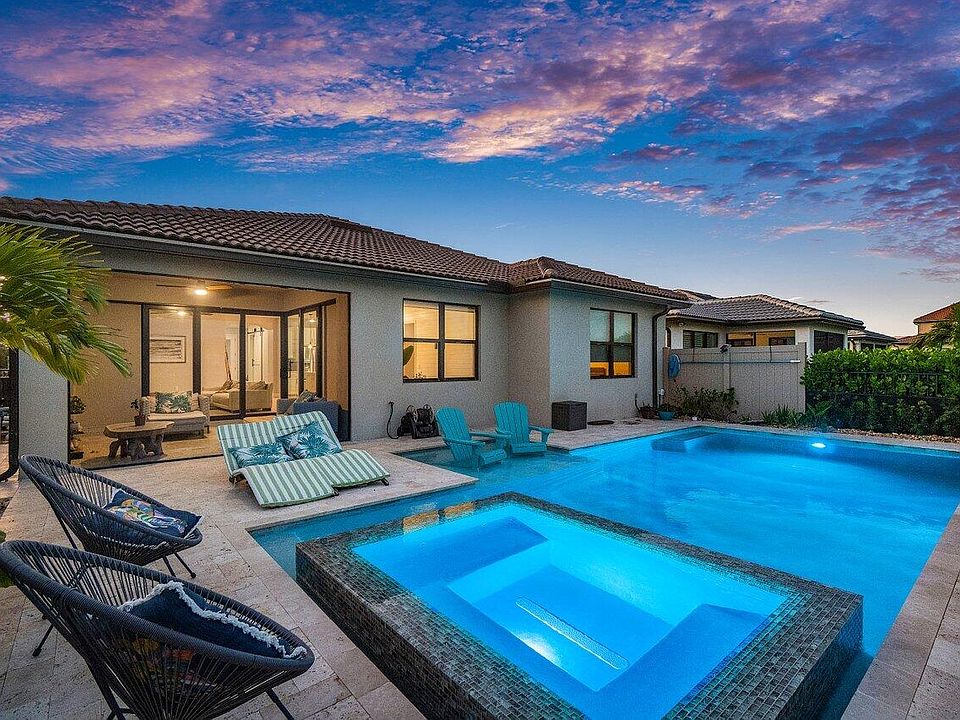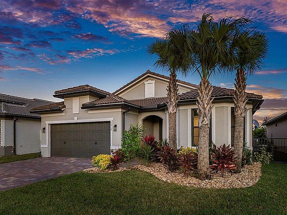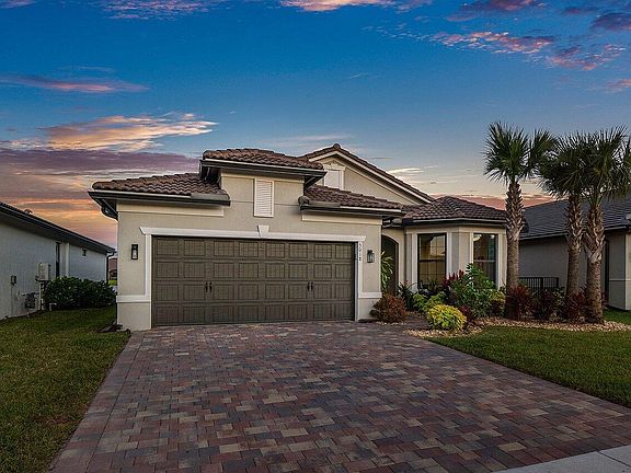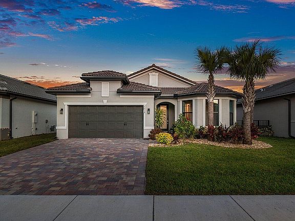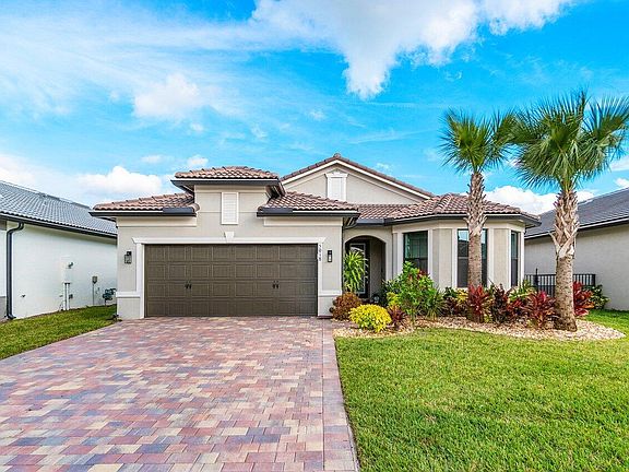 2021 Newer Construction Pool Home!! The Summerwood Model is a favorite in the highly desired community of The Fields. A single story home showcasing 3 beds / 2 full baths, 2 car garage and bonus Flex space perfect for home office or Den. With upgrades galore, this home is everything you've been waiting for! As you enter through the Foyer, find two spacious bedrooms on the right, one with extended bay window, and a shared bath with floor to ceiling tiled shower, custom light fixture, and upgraded quartz countertop. Make your way down the hall through the custom barn door where you find the laundry area with upper and lower cabinetry and built-in sink. Past the laundry you will find a bonus Flex room for visitors to enjoy. As you enter the main living area with open concept kitchen and dining, you will appreciate the updated Florette brand signature vinyl flooring throughout. The Zero point impact resistant glass sliders with incredible view will amaze and delight! Inside you will notice many fine finishes, including, upgraded Whirlpool brand stainless steel appliances, quartz countertops, custom pendant lighting, large custom sink, 42" kitchen cabinetry, custom window treatments, tile wrapped kitchen island and backsplash with large walk-in pantry. The gathering room features a neutral shiplap accent wall and oversized ceiling fan. Enter the primary bedroom to find an additional custom-shiplap wall, vaulted ceiling and new vinyl flooring throughout. The primary bath is beautifully appointed with upgraded light fixtures, floor-to-ceiling tiled extended shower with bench and large walk-in closet. The outdoor space is where this home is truly one of a kind! Enjoy your backyard oasis with lush landscaping and fully fenced yard for privacy. Walk out the screened lanai to a travertine deck with custom rock-lined walkway and Astro turf siding. Bask in the beautiful saltwater pool and infinity spa with custom lighting and design tile overlooking the Lake. What could be better? Other fine finishes include a hurricane resistant glass front door, and complete impact resistant windows and sliders, garage epoxy-coated and sealed floor, freshly painted interior, TV panel upgrade, keyless touch entry, smart home capability, DIRECT TV dish, Natural gas connection for pool heater, Range, tankless, water heater, and front and back custom landscaping. This energy efficient home is within a short distance of the amenity center showcasing a state of the art fitness facility, tennis and basketball courts and a beautiful resort style pool. The Fields by Divosta is a gated, master planned community with low HOA fees, located minutes from nearby shopping, dining, A-rated schools and adjacent to the Florida Turnpike! Call us today to schedule a private tour.