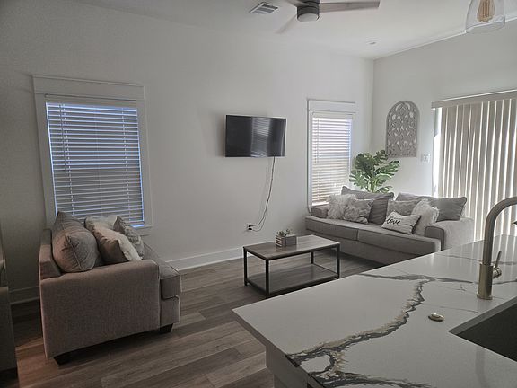 UNIT IS 1475 SQ FT This brand-new, never lived in two-story townhouse features modern design elements and ample open living space. The kitchen is equipped with stainless steel appliances including a refrigerator, microwave, and the sleek quartz countertop island with a deep sink add a touch of luxury. Laminate flooring throughout and tiled bathroom floors. Guests bath is located downstairs. *Upstairs, you will find all three bedrooms plus the extra room that can be used as an office or library, providing a peaceful retreat away from the main living areas. The utility room is also upstairs for your convenience, with high ceilings. The house is situated on a huge lot, offering plenty of outdoor space for all activities, enjoy the privacy and security of a full fenced and private gate. This home combines comfort, style and functionality. Just a few minutes from downtown, UH, Rice University, NRG Stadium, medical center, Museum district, Astroworld, hobby airport, close to the galleria and close to casual and formal dining. Renter is responsible for utilities, lawn maintenance, and renters insurance. Up to two pets total allowed. No smoking allowed. Background check required.