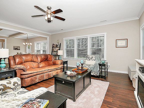 MOTIVATED SELLER! You'll enjoy lots of privacy with this yard that backs up to the woods. A short walk through the trees takes you to a PLAYGROUND and WALKING TRAILS. Like-new home features 2" blinds and craftsman-style trim throughout. Pass the private study and open dining room to find a large, open family room with windows across the back giving you a beautiful view. The stunning kitchen with espresso cabinet and huge quartz island and large breakfast nook are perfectly positioned to enjoy the lush view of the woods as well. The grand master bedroom overlooks the lovely back yard, and the master bathroom is complete with a dual bowl vanity, separate shower, tub and spacious walk-in closet. Two secondary bedrooms are nice in size and a large fourth bedroom (same size as the master) would make a great room for a teen or to use as a game room. The full-size laundry room with built-in cabinet is upstairs as well. Underground watering system with timer to remain. HOA includes the neighborhood pool just steps away in this nice, quiet neighborhood.