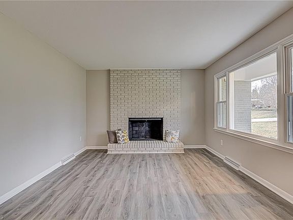 Updated ranch with partially finished basement. This home offers 3 bedrooms and 2 full bathrooms. New roof, gutters and windows and recently painted brick make for great curb appeal. Living room with fireplace and luxury vinyl plank flooring. Open kitchen and dining room. Kitchen has new shaker cabinets and granite countertops. Luxury vinyl plank flooring in kitchen, dining and hallway. All 3 bedrooms with new carpet. Hall bath with new tile surrounding the tub, new vanity and mirror. Primary bathroom with new fiberglass shower, vanity and mirror. All new lighting. Finished part of basement has fireplace and vinyl flooring. Unfinished area allows for lots of storage. New heat pump, attic insulation and service panel.